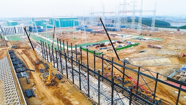 据了解,武汉1000千伏变电站主体工程自2021年10月1日正式开工,截至目前,全站共浇筑了2.2万立方混凝土,使用了2480吨钢筋,土建施工已累计完成38%,预计年底系统具备带电条件。