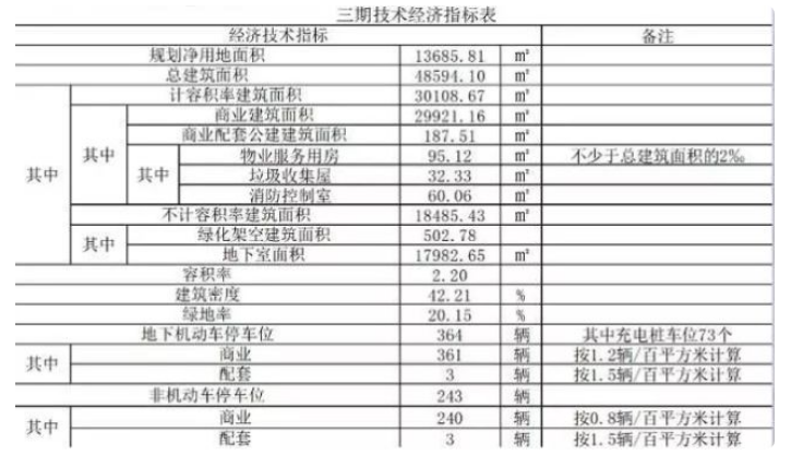其中,三期是商业地块,规划净用地面积约13685.81平米,总建筑面积约48594.1平米,计容建筑面积约30108.67平米,其中商业建筑面积29921.16平米。容积率2.2,建筑密度42.21%,绿地率20.15%。