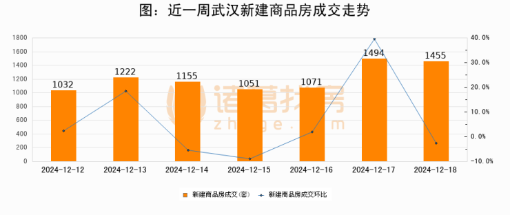 【武汉成交日报】12月18日新房成交1455套;涨价房源3套