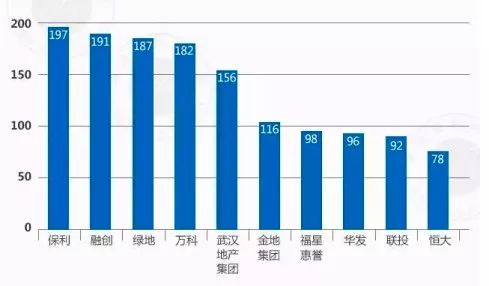 其中,融创以191亿元位列榜单第二。保利集团197亿元的成绩为保利地产、保利置业合计数据。