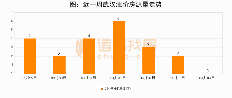 根据诸葛找房数据显示,武汉24小时涨价房源量为0套,较04月03日减少2套,环比下降100%。与此同时,涨价房源占比小幅回落,对于购房者来说是一个入市窗口期,购房者可抓住时机入市。