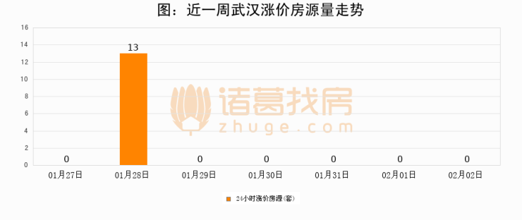 根据诸葛找房数据显示,武汉24小时涨价房源量为0套,较02月01日持平。