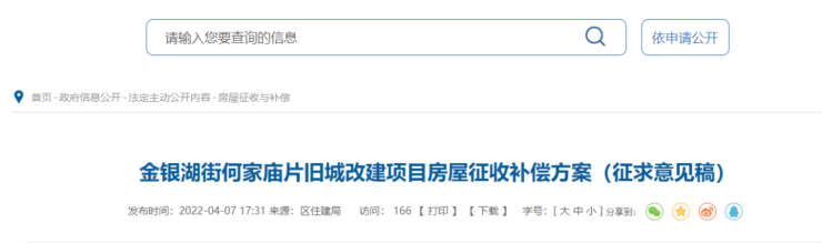 项目名称:金银湖街何家庙片旧城改建国有土地上房屋征收项目
