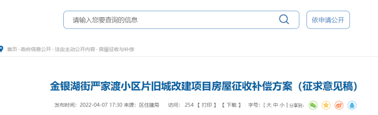 项目名称:金银湖街严家渡小区片旧城改建国有土地上房屋征收项目