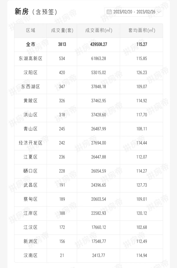 【武汉成交周报】2月20-26日新建商品住房成交3813套