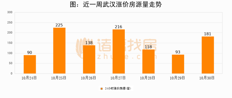 根据诸葛找房数据显示,武汉24小时涨价房源量为181套,较10月29日增加88套,环比上涨94.6%。与此同时,涨价房源占比小幅扩大,业主信心有所提升。