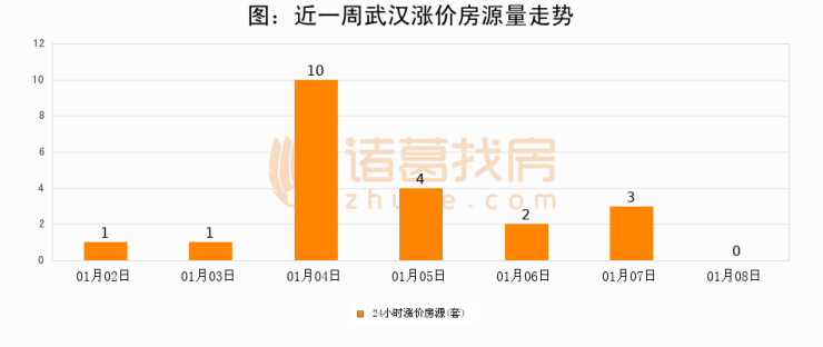 根据诸葛找房数据显示,武汉24小时涨价房源量为0套,较01月07日减少3套,环比下降100%。与此同时,涨价房源占比小幅回落,对于购房者来说是一个入市窗口期,购房者可抓住时机入市。