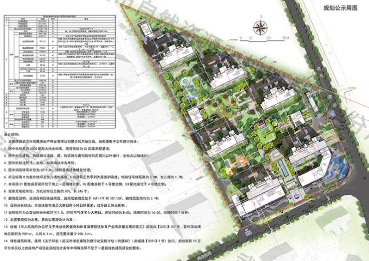 据项目经济技术指标,总用地面积29331.81平方米,总建筑面积168832.03平方米,地上计容总建筑面积123671.00平方米。其中,住宅118833.12平方米,配套商业2463.41平方米。