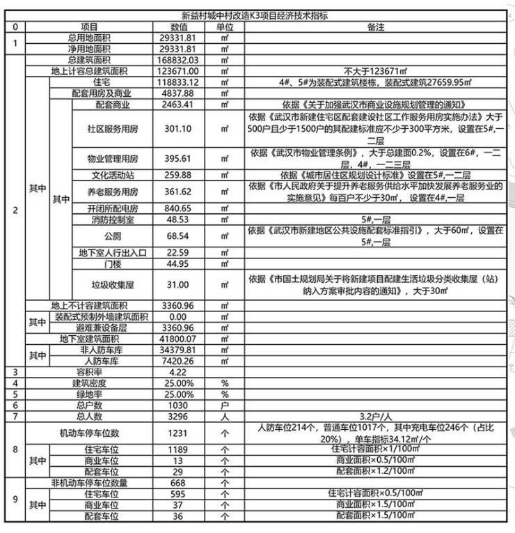 规划建筑密度25%,绿地率25%,容积率4.22,总户数1030户。规划机动车停车位1231个,其中,住宅车位1189个,商业车位13个,配套车位29个;非机动车停车位668个,其中,住宅车位595个,商业车位37个,配套车位36个。
