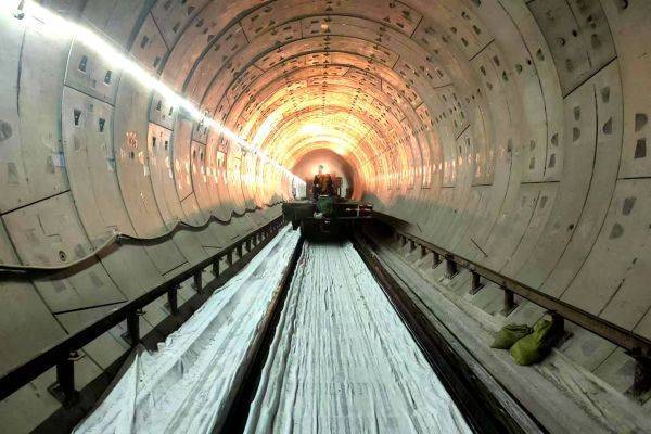 12月16日消息,搜狐焦点获悉,武汉地铁19号线正线全面进入铺轨施工阶段,这条最快时速达到140公里/小时的地铁铺轨有讲究,扣件将采用高铁材料,打造一条“更快速更安静”的线路。