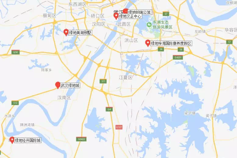 据得意房不完全统计,目前绿地在武汉有7个项目,其中:江汉区1个、武昌区2个、汉南区1个、蔡甸区1个、洪湖1个、咸宁1个。