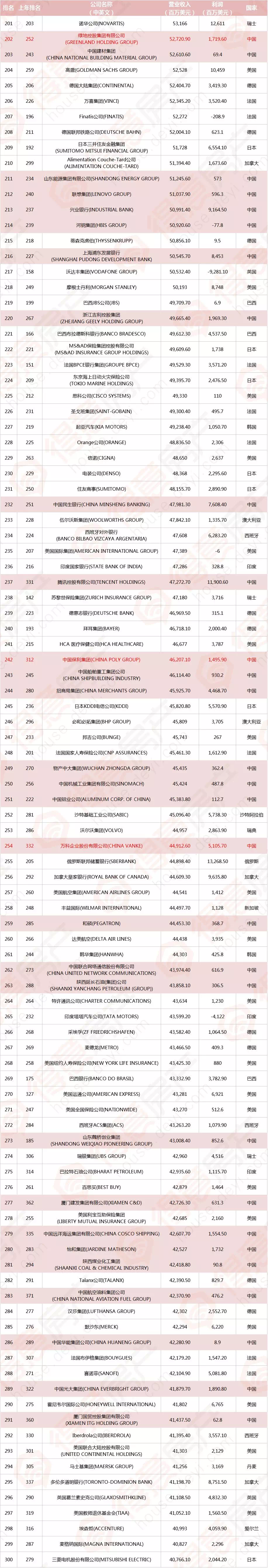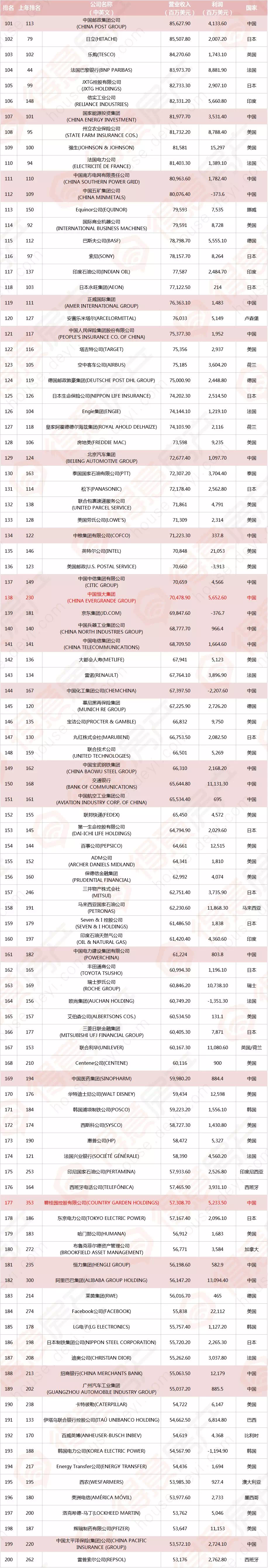 在排名位次的变化上,今年上升较快的是中国的碧桂园,跃升177位。