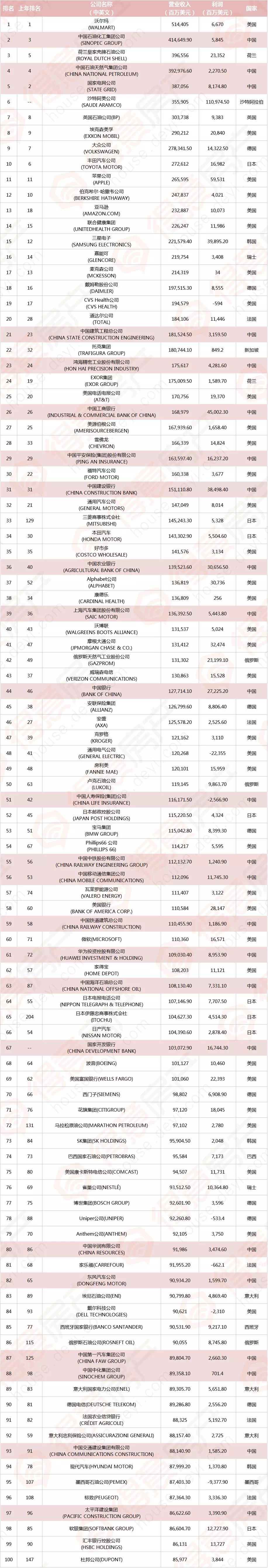 另附2019年较新世界500强明细: