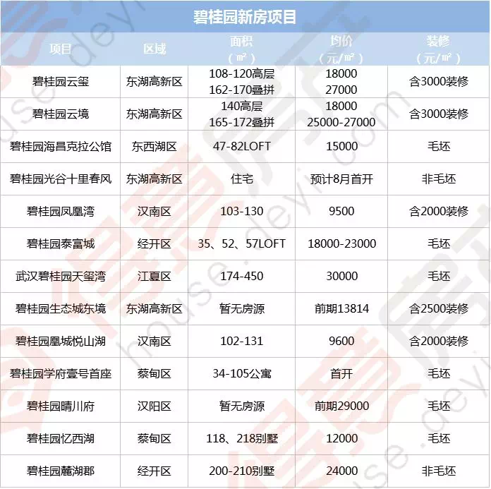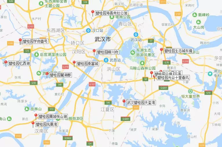 据得意房不完全统计,目前碧桂园在武汉有13个项目,其中:东湖高新区4个、东西湖区1个、汉阳区1个、汉南区2个、经开区2个、江夏1区个、蔡甸区2个。