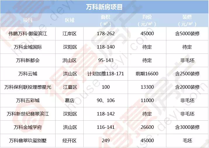 据得意房不完全统计,目前万科在武汉有9个项目,其中:汉阳区2个、洪山区3个、江岸区1个、江夏区1个、经开区1个、葛店1个。
