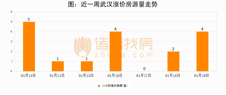 根据诸葛找房数据显示,武汉24小时涨价房源量为4套,较04月18日增加2套,环比上涨100%。与此同时,涨价房源占比小幅扩大,业主信心有所提升。