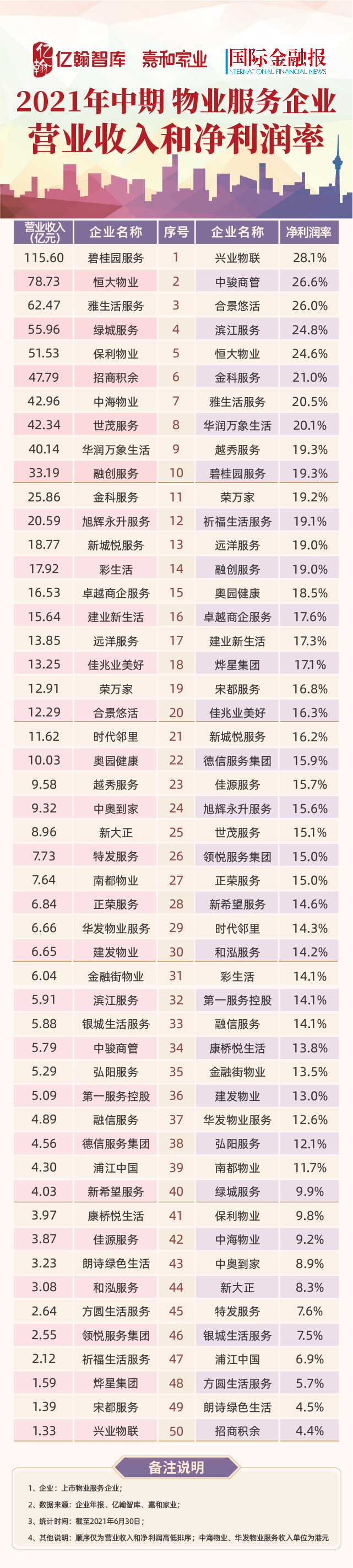 随着半年报的收官,物企行业也在“潮水退去”后完成了新一轮的洗牌。除鑫苑服务外,其余50家上市物企均已披露2021年中报。