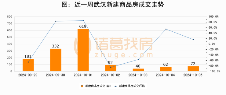 【武汉成交日报】10月05日新房成交72套;涨价房源60套