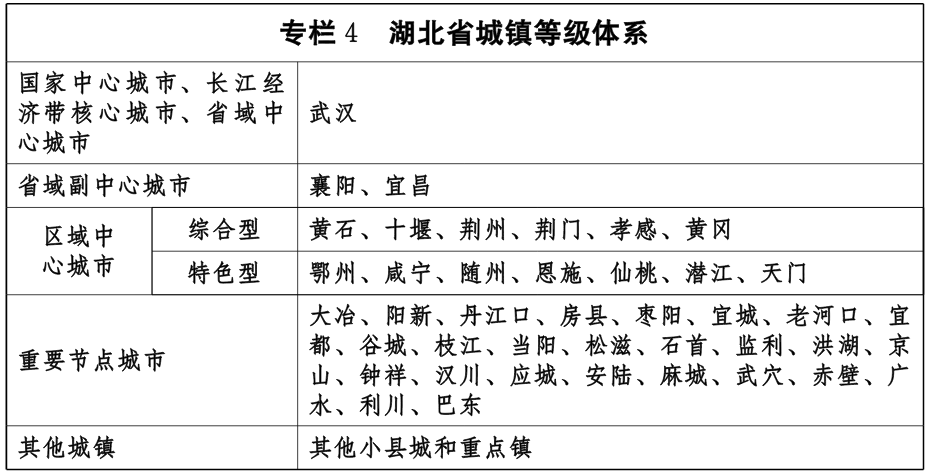 根据《规划》,湖北将形成省域中心城市、省域副中心城市、区域中心城市、重要节点城市、其他城镇的五级城镇等级体系。