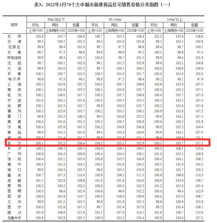分面积段来看,1月武汉新建商品住宅90㎡以下房价环比上升0.1%,同比上涨3.2%;90-144㎡之间房价环比上升0.3%,同比上涨3.1%;144㎡以上房价环比下上升0.1%,同比上涨3.7%。
