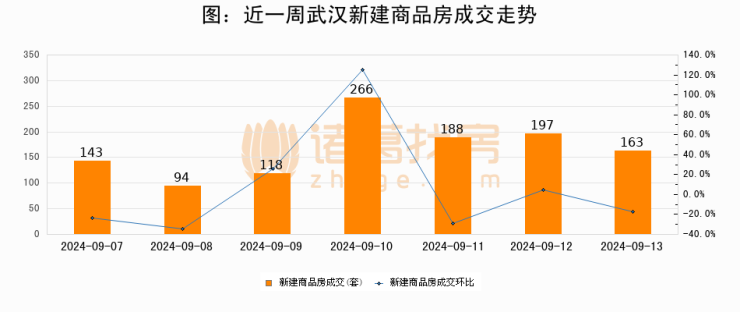 【武汉成交日报】09月13日新房成交163套;涨价房源1套