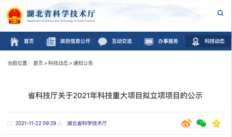 11月22日消息,搜狐焦点获悉,22日,湖北省科技厅网站发布《省科技厅关于2021年科技重大项目拟立项项目的公示》,公示项目为:国家数字建造技术创新中心建设项目(一期)。