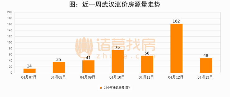 根据诸葛找房数据显示,武汉24小时涨价房源量为48套,较04月12日减少114套,环比下降70.4%。与此同时,涨价房源占比小幅回落,对于购房者来说是一个入市窗口期,购房者可抓住时机入市。