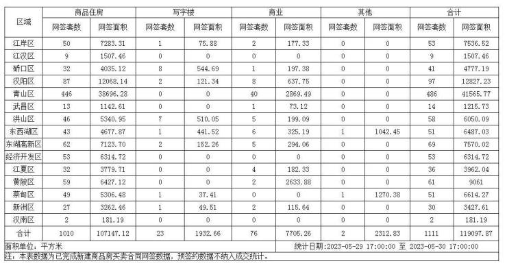 【武汉成交日报】05月30日新建商品住房成交1010套
