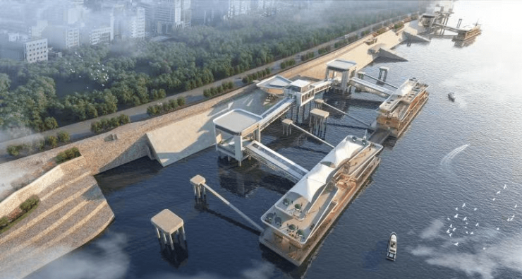 全面焕新的中华路客运码头位于武昌江滩,为原“红巷码头”和原“中华路码头”升级改造而来,2021年12月正式开工,拟建设6个客运泊位,设计年通过能力475万人次。