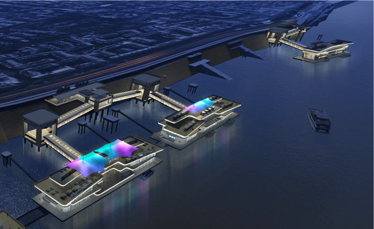 根据规划,未来中华路客运码头将成为两江四岸游览船的主要停泊点,码头边的两座大型现代化趸船也将增设餐饮、购物、文创等配套服务,让游客在乘船前、下船后拥有更丰富的体验。