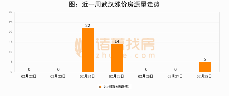 根据诸葛找房数据显示,武汉24小时涨价房源量为5套,较02月27日增加5套,环比上涨0%。与此同时,涨价房源占比小幅扩大,业主信心有所提升。