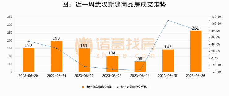 【武汉成交日报】06月26日新房成交261套;涨价房源721套