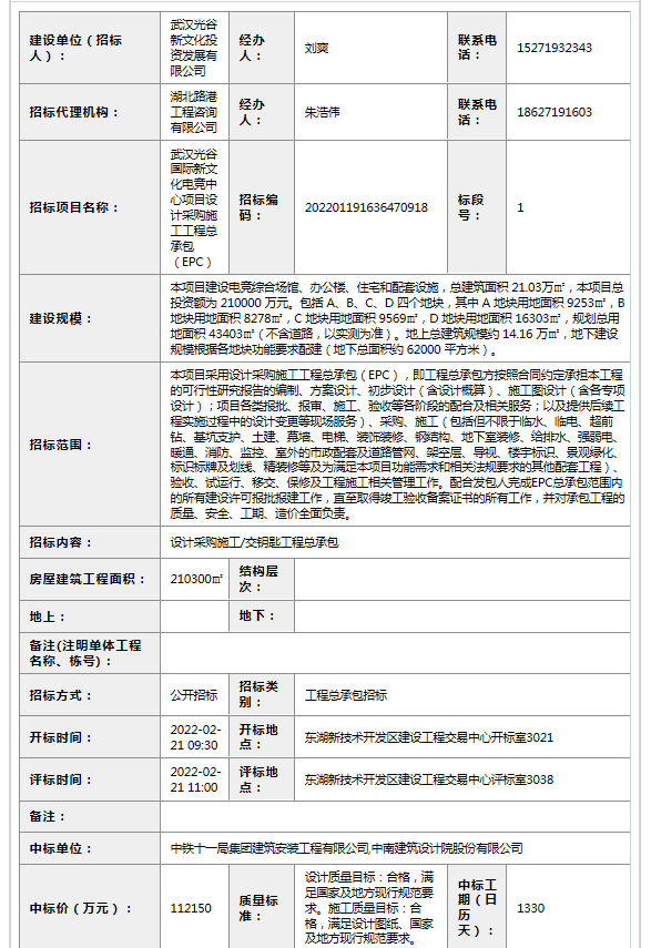 3月2日消息,搜狐焦点获悉,2月25日,建安公司成功中标武汉光谷国际新文化电竞中心项目(EPC)。