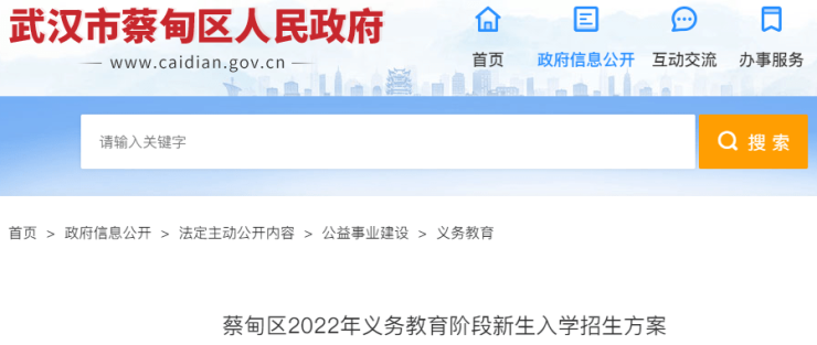 蔡甸区2022年义务教育阶段新生入学招生方案