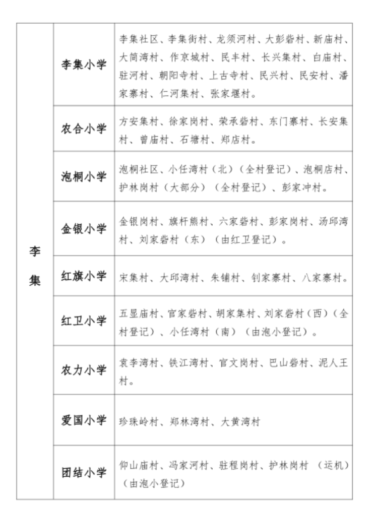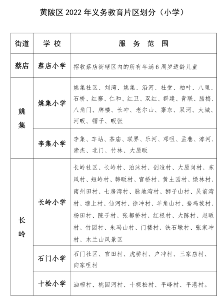 ➤ 黄陂区2022年义务教育片区划分(小学):