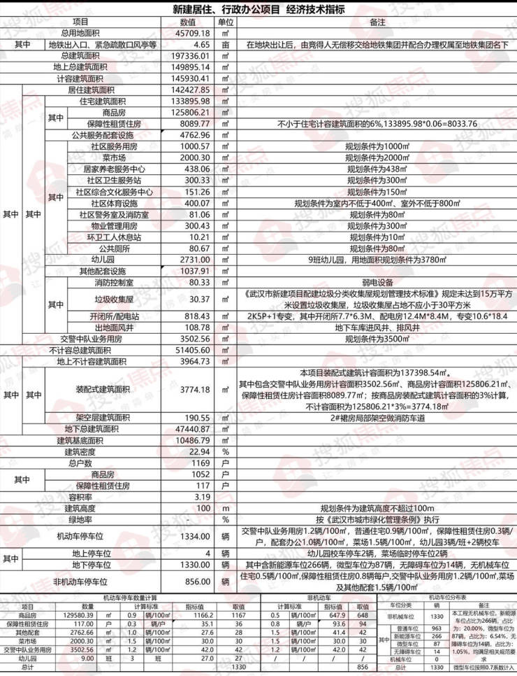 具体来看,该项目总用地面积45720平方米,总建筑面积19.7万平方米,计容总建筑面积14.6万平方米,规划总户数1169户(商品房1050户、保障性租赁住房117户),容积率为3.19,机动车停车位1334辆。