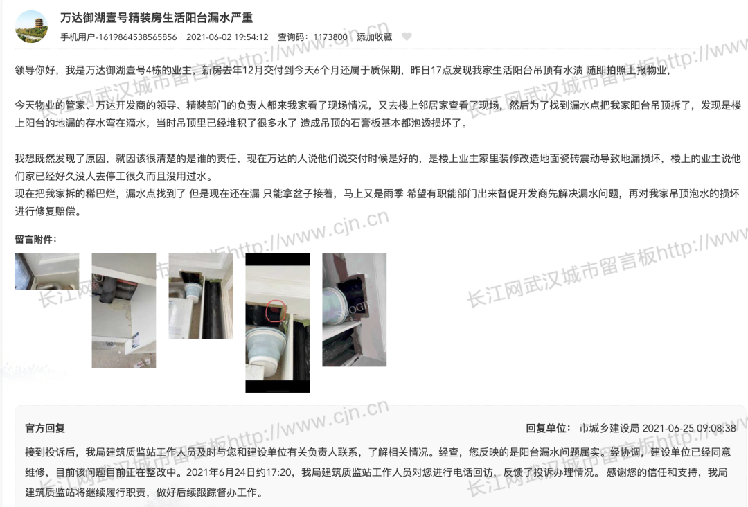到2021年6月份,又出现漏水严重的问题。漏水在装修问题中算是非常严重的问题,今天又曝出天价停车费,看来万达御湖壹号的问题不少!