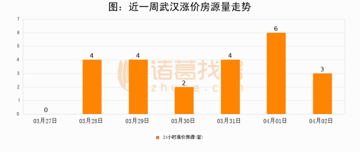 根据诸葛找房数据显示,武汉24小时涨价房源量为3套,较04月01日减少3套,环比下降50%。与此同时,涨价房源占比小幅回落,对于购房者来说是一个入市窗口期,购房者可抓住时机入市。