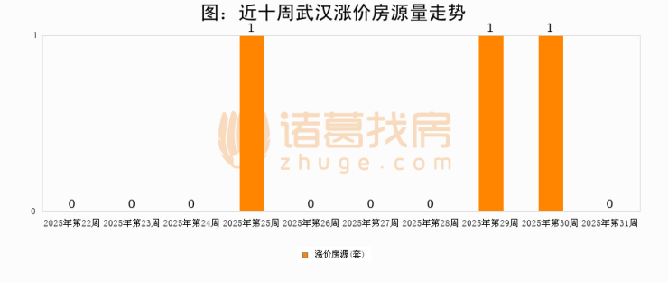 从调价房源来看,第31周武汉涨价房源0套,较上周下降100%。与此同时,31周涨价房源占比回落100个百分点,业主信心小幅波动,购房者可则需入市。