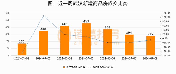 【武汉成交日报】07月08日新房成交275套;涨价房源70套