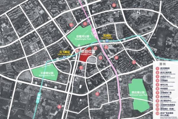 武汉图书馆新馆周边文化、景观、环境资源丰富。该馆紧邻武汉博物馆等公共服务设施,距离王家墩公园、后襄河公园也仅约500米,附近武汉广电全媒体中心正在建设。紧邻轨道2、3、7号线站点范湖站和云飞路站,新馆的交通也很便捷。