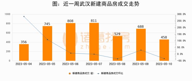 【武汉成交日报】05月10日新房成交458套;涨价房源68套