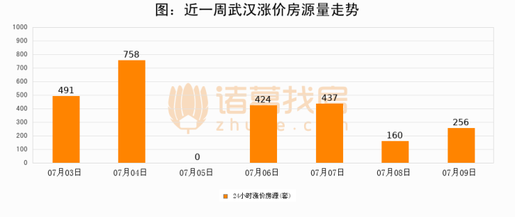 根据诸葛找房数据显示,武汉24小时涨价房源量为256套,较07月08日增加96套,环比上涨60%。与此同时,涨价房源占比小幅扩大,业主信心有所提升。
