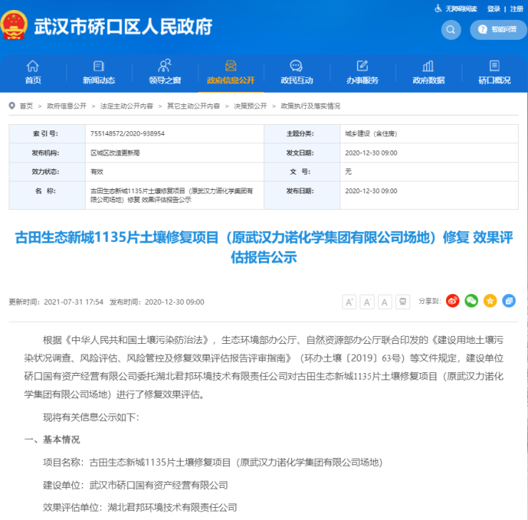 1135片地块的前身是硚口区古田化工区,由于受到重金属和有机物的双重污染,该地块于2017年开始治理修复。历史上,这块地也受到了众多企业的关注。