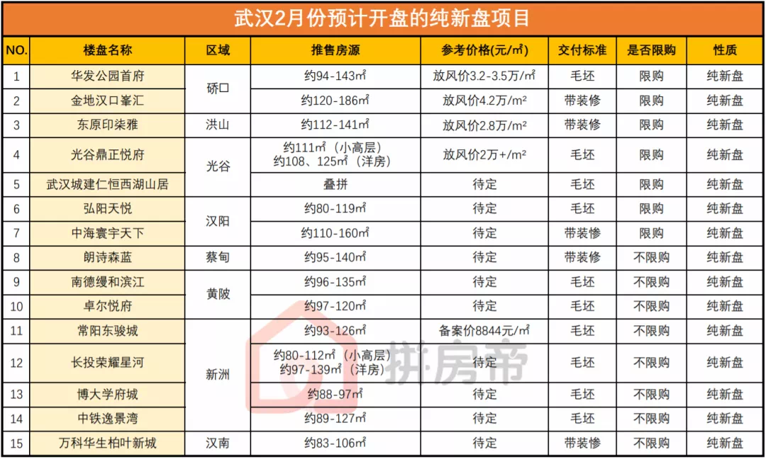 让我们一起看看,2月大武汉有哪些纯新盘。
