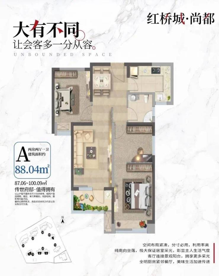 福星惠誉红桥城·尚都最小面积段总价为126万左右,首付三成为38万左右;