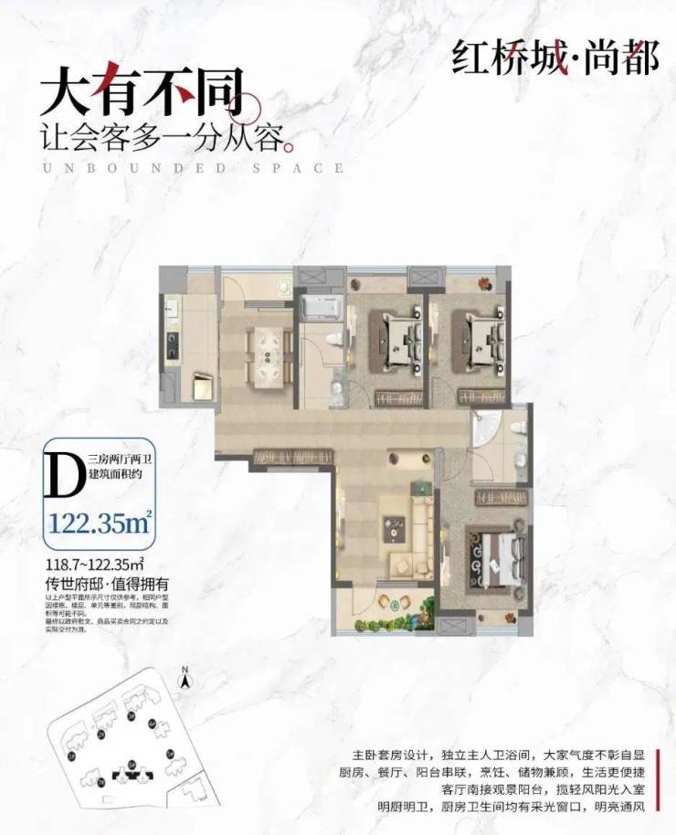 福星惠誉红桥城·尚都规划净用地面积36858.76平方米,总建筑面积219706.39平方米,容积率4.29,绿化率30%,总户数1380户,车位1585(全地下车库)车位配比1:1.15。