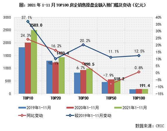 11月百强房企业绩同环比双降,TOP30成规模分水岭