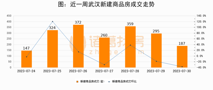 【武汉成交日报】07月30日新房成交187套;涨价房源373套