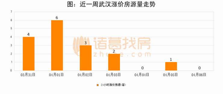 根据诸葛找房数据显示,武汉24小时涨价房源量为0套,较04月05日减少1套,环比下降100%。与此同时,涨价房源占比小幅回落,对于购房者来说是一个入市窗口期,购房者可抓住时机入市。